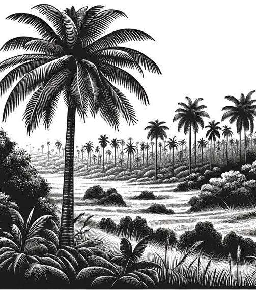 LePapierPeintLe Papier peint jungle noir et blanc Champ de palmiers , évoque une atmosphère de mystère et de sérénité au cœur de la nature sauvage. Les silhouet...