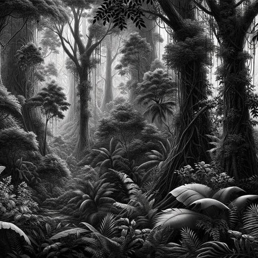 LePapierPeintPlongez au cœur d'une jungle luxuriante et envoûtante avec ce Papier peint jungle noir et blanc Végétation massive, où une végétation massive prend...