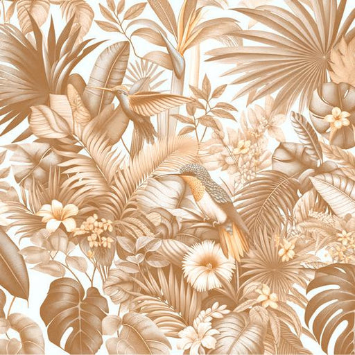 LePapierPeintPlongez au cœur d'une jungle luxuriante avec le papier peint jungle beige Feuillages massifs et colibris. Cette œuvre artistique captivante évoque ...