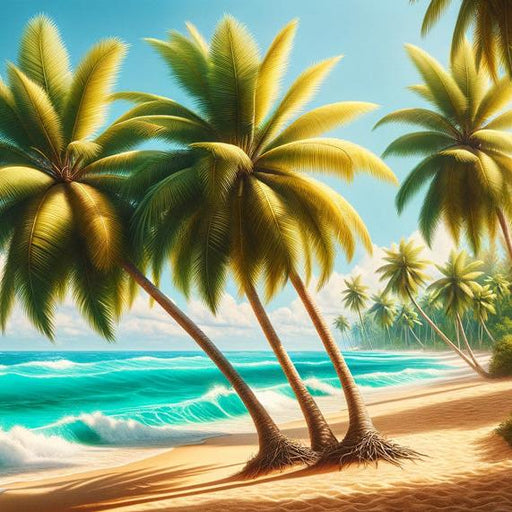 LePapierPeintDécouvrez notre papier peint Plage Palmiers et île paradisiaque, une œuvre murale qui évoque la beauté exotique des tropiques et l'évasion qu'ils o...