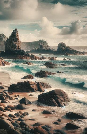 LePapierPeintLe Papier peint plage Rocher et nuage, capture la grandeur et la tranquillité de la côte dans une composition épurée et contemplative. Les nuances ...