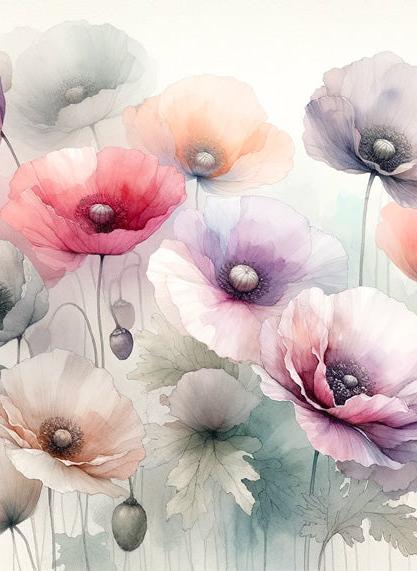 Afficher tous les détailsPapier peint fleuri pastel | Champ de fleurs en aquarelle pastel