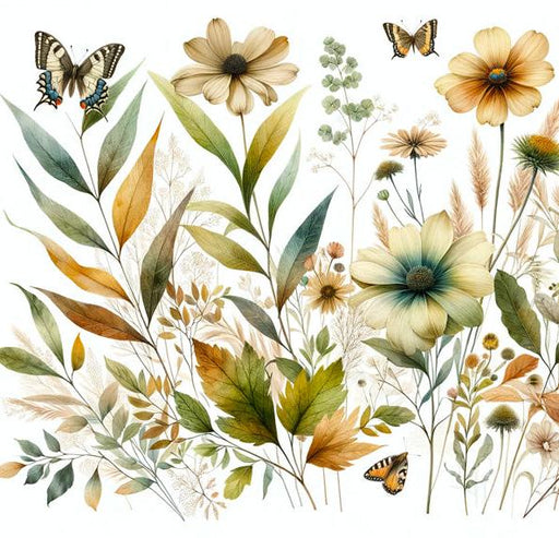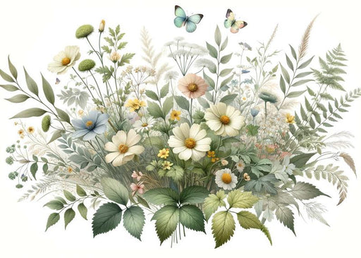 Afficher tous les détailsPapier peint fleuri pastel | Papillon et fleurs des champs neutres