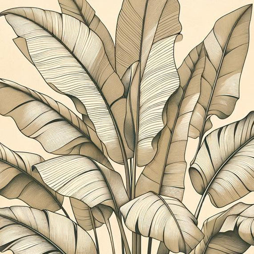 Afficher tous les détailsPapier peint feuillage beige | Line art de feuilles de bananiers
