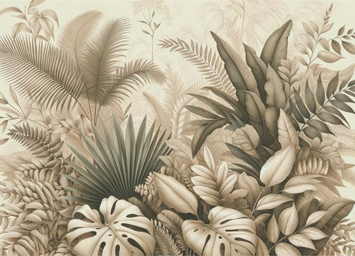 LePapierPeintPlongez au cœur d'une jungle luxuriante avec le papier peint jungle beige Feuilles de bananiers beiges. Cette création artistique captivante évoque...