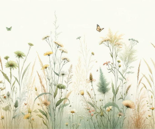 Afficher tous les détailsPapier peint fleuri pastel | Champ de fleurs aux tons neutres
