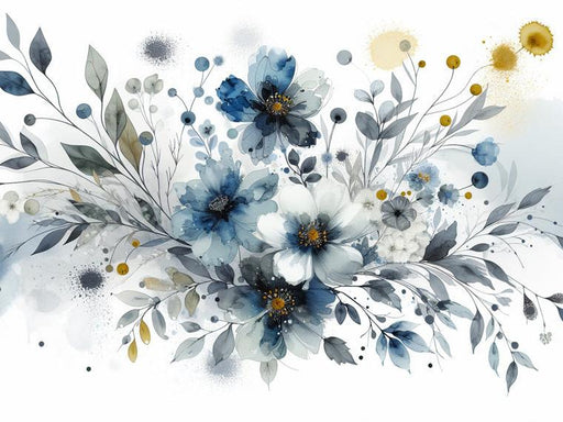 Afficher tous les détailsPapier peint fleuri pastel | Aquarelle bleutés avec pétales et feuillages