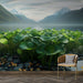 Ce papier peint paysage lacustre transforme n'importe quel espace en un havre de tranquillité et de beauté naturelle. Avec une vue imprenable sur des montagnes enneigées se reflétant sur des eaux calmes, entourées de riches feuillages verts, il invite à une évasion visuelle apaisante.