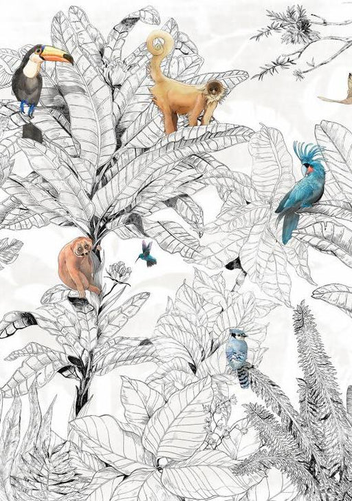 Papier peint tropical noir et blanc | Animaux colorés