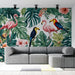 Plongez dans l'exotisme avec notre papier peint tropical, mettant en scène des flamants roses et des toucans parmi une végétation luxuriante de grandes feuilles et de fleurs colorées. Ce design vibrant est parfait pour apporter une touche de nature à votre intérieur.