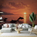 Apportez la beauté de l'océan dans votre espace avec notre papier peint dauphins capturant un magnifique coucher de soleil. Les silhouettes des dauphins sautant joyeusement au-dessus de l'eau créent une scène apaisante et inspirante.