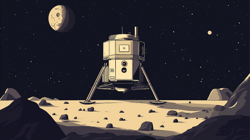LepapierpeintCe papier peint captivant présente un vaisseau spatial posé sur la surface lunaire, entouré de rochers et d'un ciel étoilé, créant une ambiance fut...