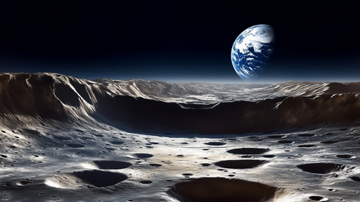 Afficher tous les détailsPapier peint univers | Scène lunaire futuriste avec la Terre en arrière-plan