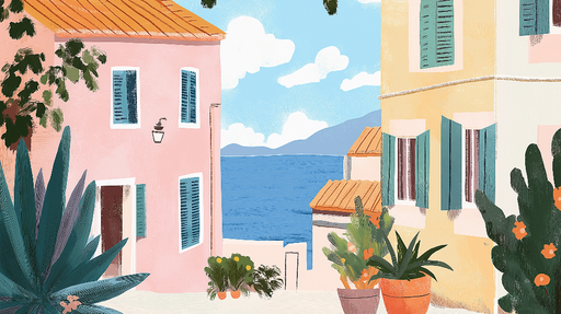 LepapierpeintDécouvrez notre magnifique papier peint représentant un paysage méditerranéen vibrant, où la douceur des couleurs se marie harmonieusement avec l'a...