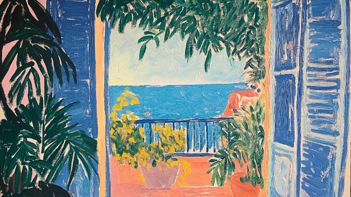 LepapierpeintCe papier peint évoque une scène de vacances idylliques avec une belle vue sur la mer. Le cadre est orné de végétation luxuriante et de belles fleu...