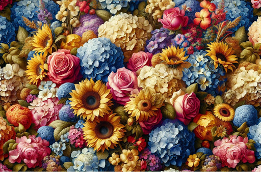Afficher tous les détailsPapier peint fleuri vintage | Tournesols, roses, et fleurs colorés