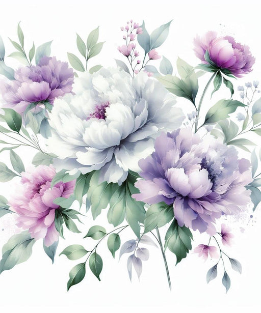 Afficher tous les détailsPapier peint pivoine | Composition florale violette et blanche avec feuilles vertes