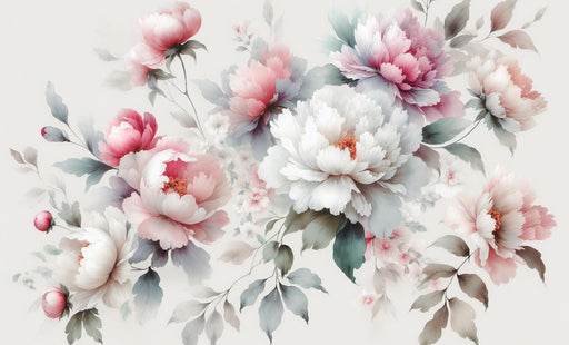 LePapierPeintCe Papier peint pivoine, avec ses fleurs aux teintes douces de rose et de blanc, apporte une élégance délicate et une sensation de fraîcheur printa...