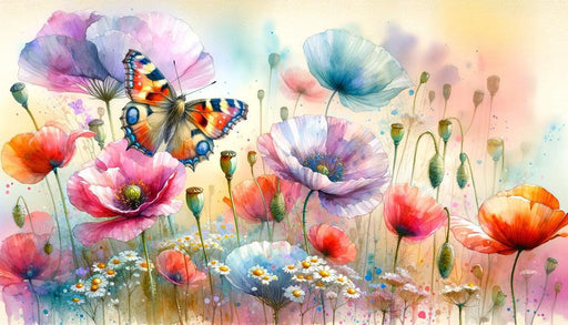 Afficher tous les détailsPapier peint papillon aquarelle | Fleurs des champs et papillon majestueux