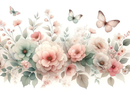 Afficher tous les détailsPapier peint papillon | Fleurs roses et bleues