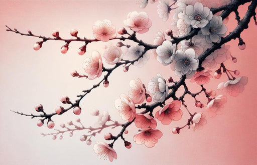 LePapierPeintLe papier peint Sakura Arbre Japonais Fleurs Roses et Grises incarne l'élégance et la subtilité dans un tableau enchanteur. Ce papier peint sakura ...