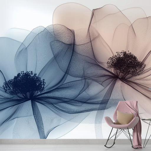 Papier peint fleurs éthérées | Bleu translucide et élégant