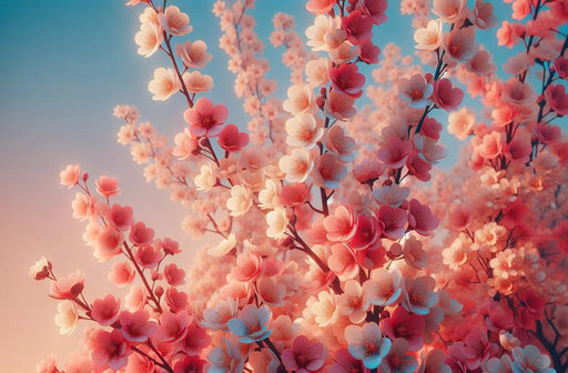 LePapierPeintCe Papier peint cerisier japonais est une célébration vibrante de la floraison, où les nuances de corail et de pêche se mélangent pour créer un fon...