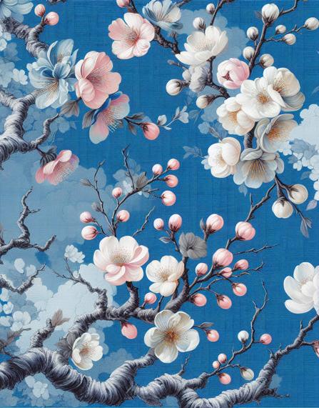 LePapierPeintCe Papier peint cerisier japonais est une véritable œuvre d'art, où chaque pan de mur se transforme en une toile céleste. Le fond bleu profond, évo...