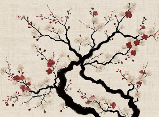 LePapierPeintCe Papier peint cerisier japonais est une célébration de la nature, mariant l'élégance du minimalisme et la richesse visuelle. Les branches tortueu...