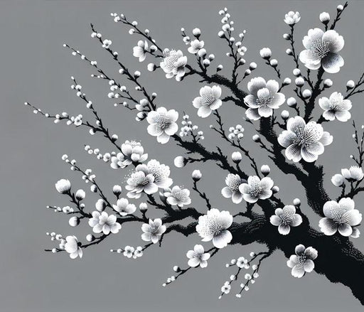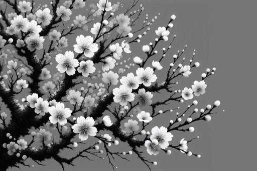 Afficher tous les détailsPapier peint cerisier japonais noir et blanc | Fleurs ouvertes et fermées