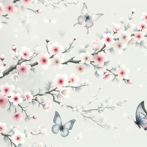 Afficher tous les détailsPapier peint cerisier japonais | Papillon et fleurs de cerisier grises et roses
