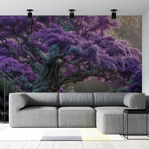 Créa'VDécouvrez notre papier peint arbre magique qui offre une scÚne enchanteresse avec un arbre majestueux aux feuilles violettes vibrantes, parfait pou...