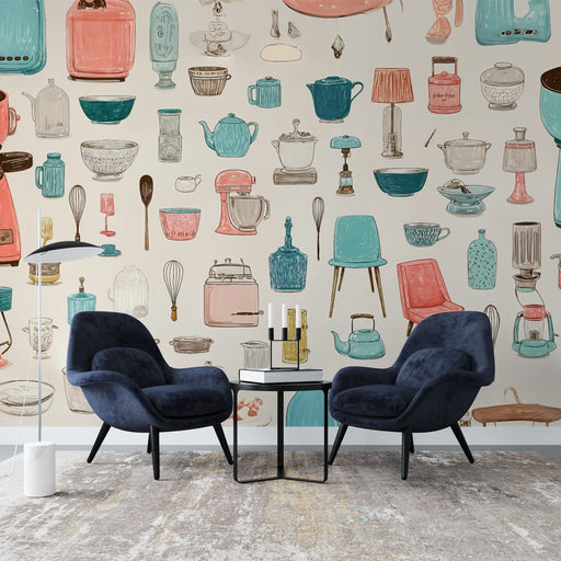 Afficher tous les détailsPapier peint cuisine rétro | Illustrations colorées