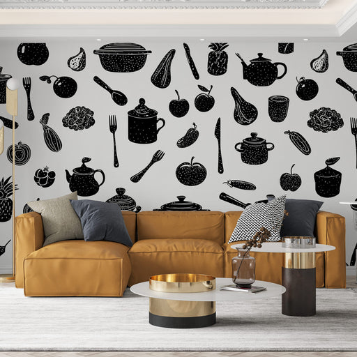 Afficher tous les détailsPapier peint Cuisine Vintage | Illustrations d'Ingrédients et Ustensiles