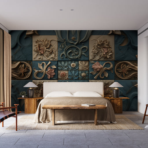 Afficher tous les dĂ©tailsPapier peint baroque floral | ĂlĂ©gance sculptĂ©e bleu et or