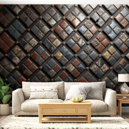 Afficher tous les détailsPapier peint carreaux vintage | Motifs emboutis multicolores