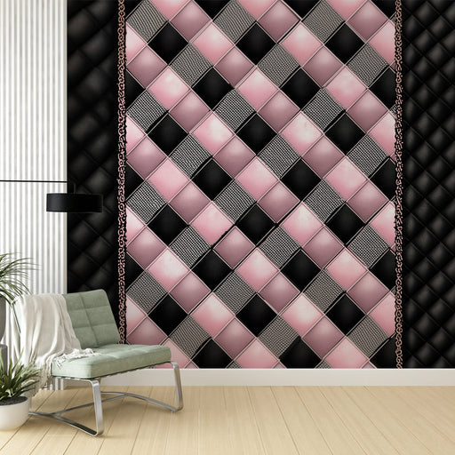 Créa'VCe magnifique papier peint capitonné crée une ambiance chic avec son effet matelassé en nuances de rose et noir. Idéal pour ajouter une touche de g...