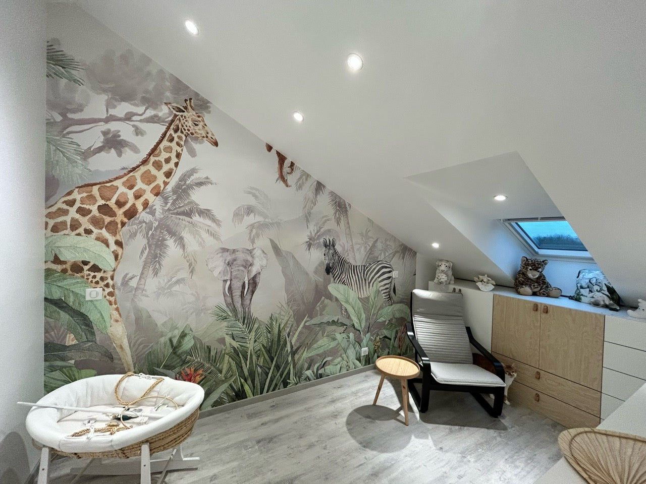 LePapierPeintImaginez une douce promenade au cœur d’une jungle luxuriante, où girafes, zèbres et guépards croisent le chemin des explorateurs en herbe. Notre pa...