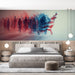 Découvrez notre papier peint Amérique illustrant des silhouettes artistiques dans les tons rouges et bleus formant la carte des États-Unis. Parfait pour un décor moderne et patriotique.