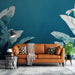 Papier peint bleu canard | Feuilles tropicales stylisées en nuances de bleu