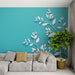 Papier peint bleu canard | Motif de feuilles blanches délicates