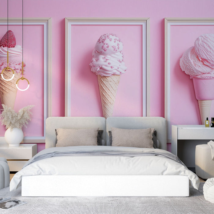Papier peint glace | Trois cornets de glace sur fond rose délicat