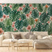 Papier peint tropical | Feuilles vertes et fleurs exotiques